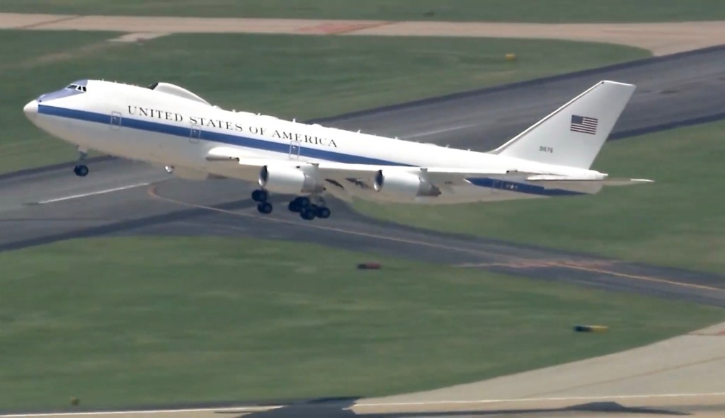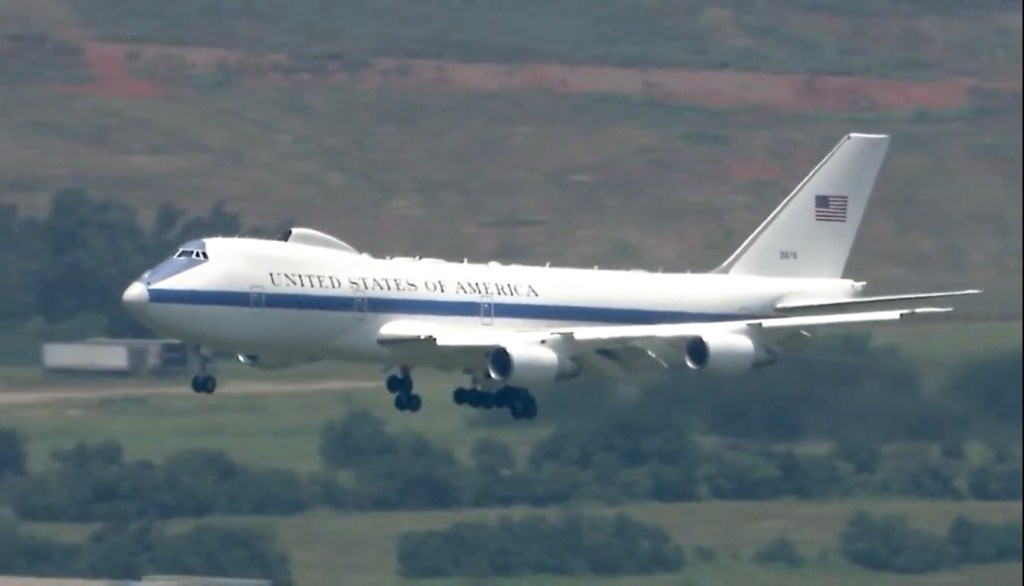 Oklahoma City – The skies over Oklahoma City recently hosted a rare and awe-inspiring sight: the Boeing E-4 Advanced Airborne Command Post, commonly known as the “Doomsday Plane.” This impressive aircraft, designed to serve as a secure command center during national emergencies, is a testament to the United States’ preparedness and technological prowess.